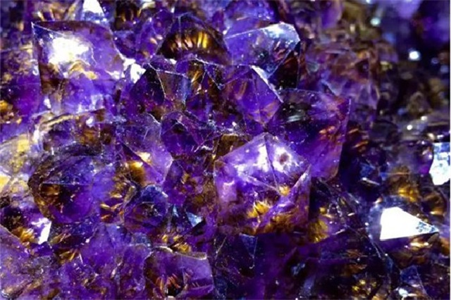 也可以从光泽度进行区分,天然形成的紫水晶光泽度很高,主要呈玻璃光泽,摸上去很有手感,而假的紫水晶成蜡质光泽,摸上去没什么手感,给人一种很干的感觉。
