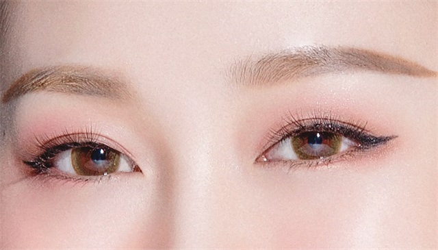 笑眼妆是一种很适合淡妆的眼妆,因此我们可以选择浅色眼影作为眼妆的打底色。再用相同色号的珠光眼影晕染眼尾的部位,我们可以借助指腹或是小号眼影刷在眼尾部分轻刷。