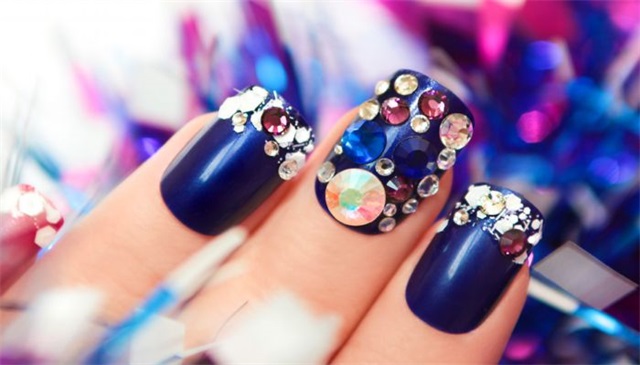 美甲不仅要好看,还要在好看的同时显手白,这样才能让你的手部在美甲的增彩下更加好看。黑色系也是比较引人注目的颜色,在设计的时候可以加入跳色,既时尚又好看。