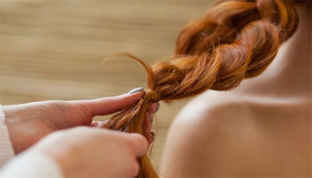 还可以将左右两边分别分离出一小束头发并用发夹固定,然后将中间的头发在右下方的位置扎好,左右两束头发也在大束头发的上方扎在一起,然后向上反转一圈固定,将所有头发都编成一条三股辫,卷成小发髻后用钢丝夹将小发髻在脖颈上方位置固定即可。