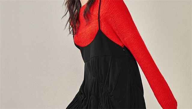 紧身款式的打底衫还可以搭配吊带连衣裙。在秋冬季节,可以选择一件棉质的吊带连衣裙,在内搭一件紧身款式的打底衫,可以凸显女性的柔软气质,从而打造出优雅又精致的女性形象。
