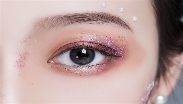 在眼窝处打阴影,可以眼鼻部的轮廓看起来更加明显,从而有助于打造高挺的鼻梁效果。我们可以先用眼影刷在眼窝处轻刷,加深眼部轮廓。