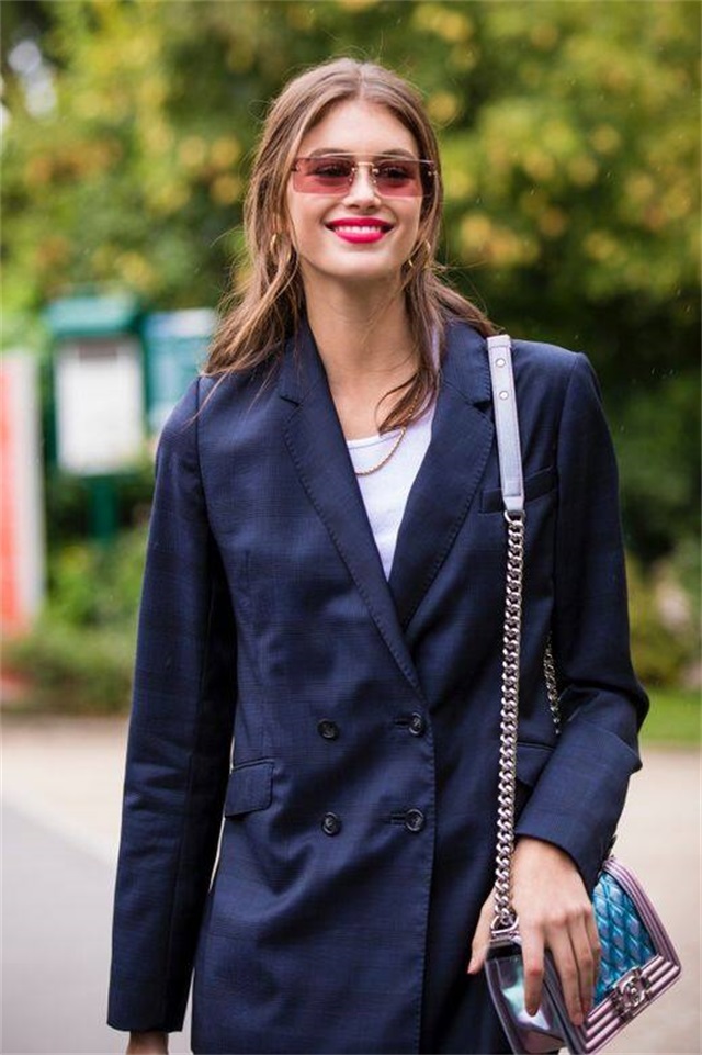相比ClassicFlap及2.55ChainBag,ChanelBoy袋形更方正,且质感、线条更硬朗,袋如其名更有男孩气息。手袋更备有不同材质和颜色,其中KaiaGerber背着的渐变金属色调很有摇滚味道。