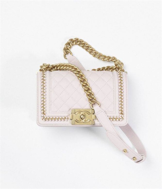 淡粉红色小牛皮制作的迷你版BoyChanel手袋,摇滚与甜美可爱并重!($47,800)