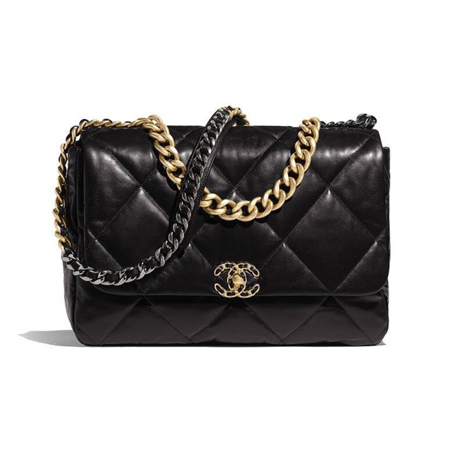 Chanel19大号皮革链袋,买袋当然要买经典款,这种经典大号黑色羊皮配链带款实用度毋庸置疑,也是香奈儿包包的时尚标志。($52,600)