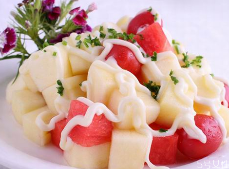 2、苹果沙拉 材料:苹果2个,沙拉酱适量。 做法:将苹果洗净去皮状去核切成块并盛入盘中备用,然后将沙拉酱倒入苹果盘中,调拌均匀即可食用。 功效:瘦身减脂,提供充足的营养,对希望减肥的人特别有好处。 温馨提示 苹果营养价值高且有助于减肥,但这并不代表你就可以光吃苹果,而不吃其他食物哦。每天单单只吃一样东西,营养不均衡,即使那东西减肥效果再强也很难让你瘦下来