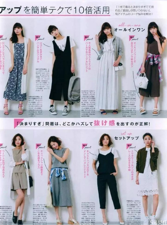 日系穿搭非常讲究基础款的选择,以及对类似款式的重复搭配,其中以裙装居多。“女人味”是日系装扮的一个重点,即使是帅气运动风也一定会有甜美型的单品作平衡。