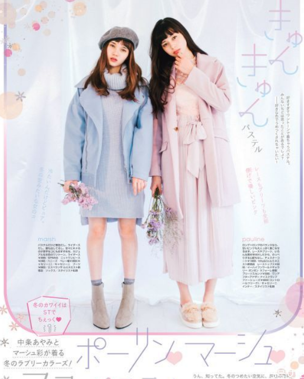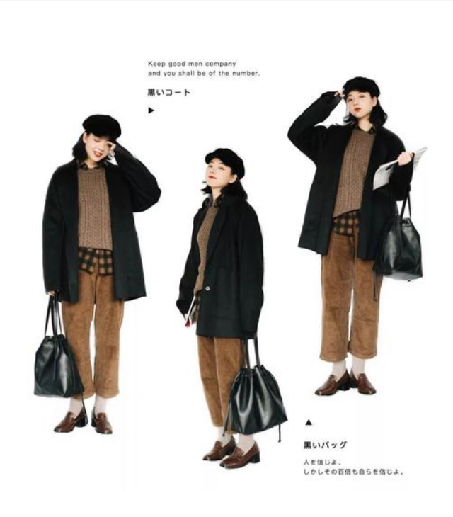 再来是衣服的颜色,女孩们同样也都会选择低饱和度的颜色,所以你总能在日杂里看到浓浓的复古风。