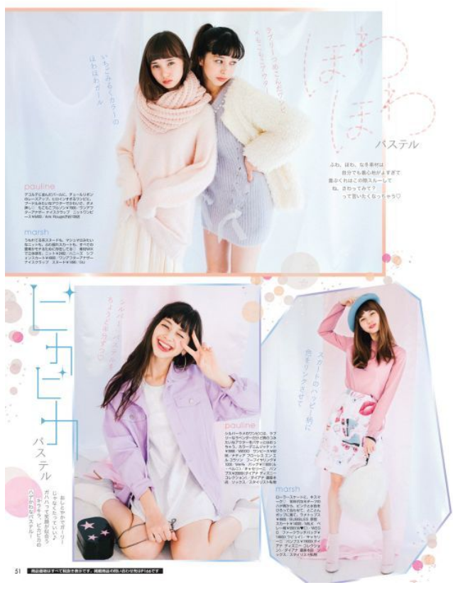 颜色饱和度低是整个日系风格的一个特点。日系女生往往给人温柔可人的印象,这类风格多选择浅浅的、饱和度低的颜色,不会带来攻击力。