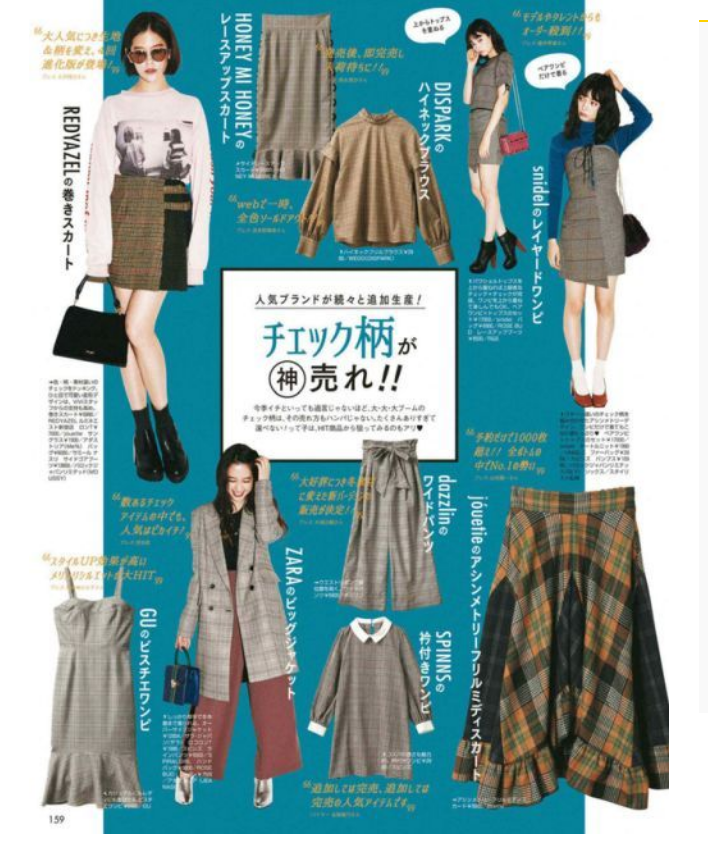 因为日本女孩儿真的对复古风情有独钟,所以她们也很爱格纹的单品,格纹裤、格纹裙、格纹西装都是出镜率很高的。