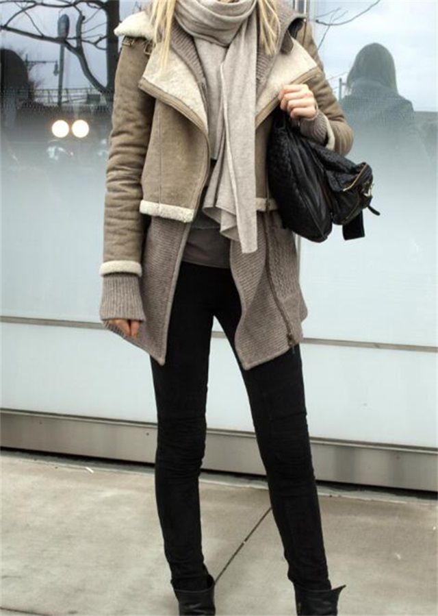 针织外套+毛呢裤