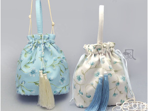 各大汉服商家出的最多的就是绣花小包,不需要五金配饰,工艺上自己能hold住,跟荷包有异曲同工之妙,其实手工娘感觉就是荷包的演生。这种抽绳小包自己也能做,平时做衣服剩下的边角料有适合的就能拿来用啦。想起我曾发过古法荷包的教程,感兴趣可以看看。