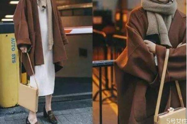咖啡色大衣搭配打底衫