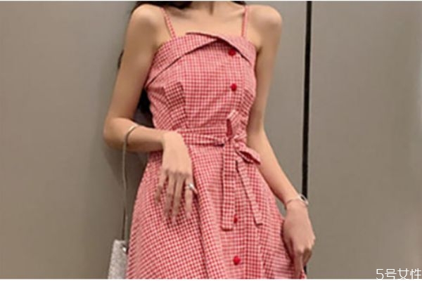 夏天选择一件格子A字吊带裙,很凉快也很小清新,那么可以选择里面搭配蕾丝打底衫,会让你整个造型看起来变得更加的有女人味而且也比较遮肉,还有小性感feel。