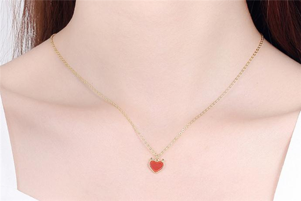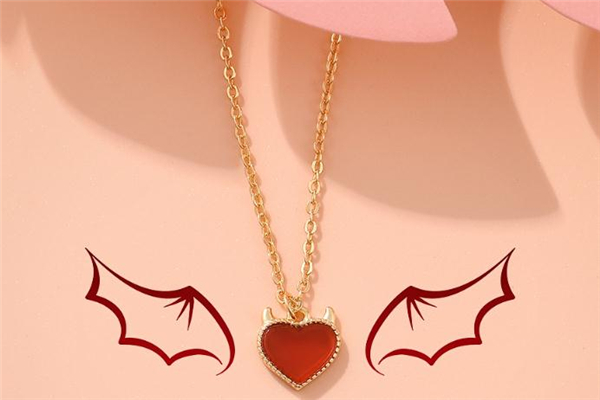 sharkbaby这款项链采用了金色与正红色的搭配颜色上面看起来更加耀眼,吊坠是爱心的同时又给加了两个小恶魔的耳朵,非常俏皮,是一款不同于寻常的心形项链。