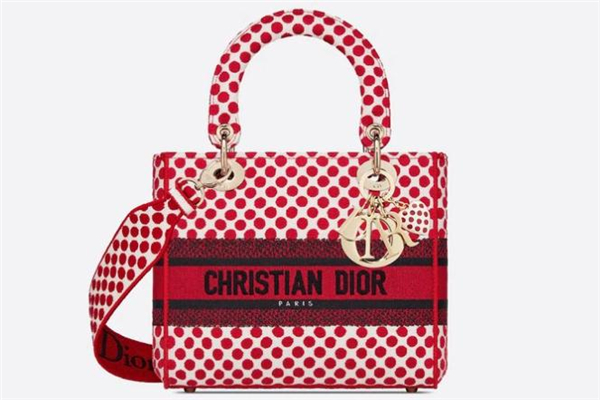 3来自 Dioramour 系列,通体刺绣有红色 Dior 波点图案,正面饰以同色调的“Christian Dior”标志,时尚而柔美。每一个波点均为手工精心装饰,突显 Dior 的精湛工艺,标志性的浅金色“D.I.O.R.”吊饰装饰经典的版型。这款中号手袋搭配大号可拆卸双面刺绣肩带,可随心选择背挎方式。
