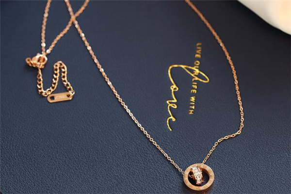 柒曼项链是钛钢材质的。坠子上的字体刻画清晰,贴钻闪亮,链子轻巧,带着毫无感觉。