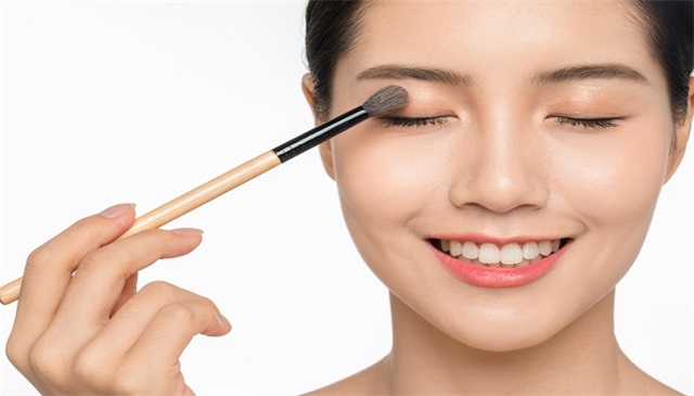先用大号眼刷取适量的大地色眼影,将其大面积涂抹在眼皮上,再用指腹将其晕染均匀。用小号眼影刷,取深一个色号的眼影,将其小范围涂抹在眼皮上,再用指腹将其晕染自然。