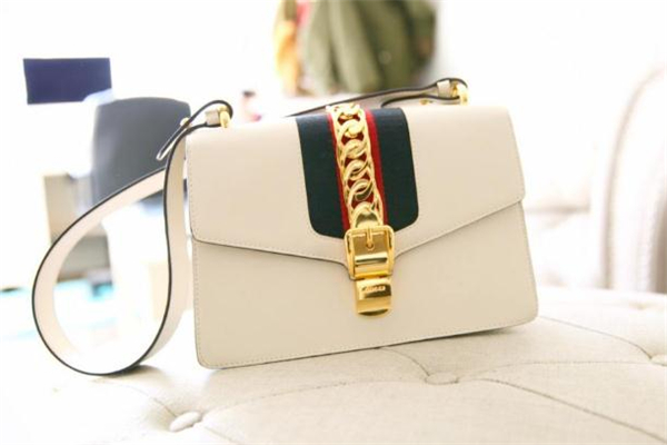 2.gucci sylvie系列缎带包:这款包的最大的精妙之处在于肩带的设计,有两款肩带,可以斜跨也可以手提。肩带是金属的链条锁搭配彩带,组合在一起,有奇妙的化学反应,更具民族风情。包身上除了一般素色款,还有印花款可供大家选择。
