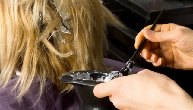 3、漂粉+6%+精油 100-150-(5-10滴),分别涂抹在发根、发中段上,比较黑的部分涂抹厚一点,发尾涂少一点,涂完后用保鲜膜包裹,等待25-30分钟。