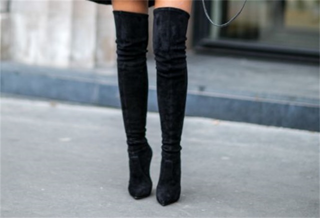 今年冬季还十分流行过膝长靴搭配中长款毛衣,中长款毛衣到大腿位置,过膝长靴长度大概在膝盖以上,上松下紧,十分显瘦和凸显知性气质。