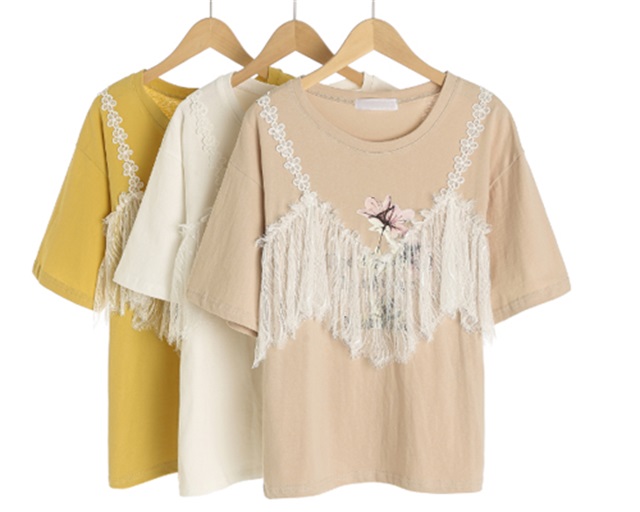 无彩色上衣、绿色上衣、橘粉色上衣、印花上衣、印花吊带上衣、同色系上衣、一字领上衣、透视上衣。