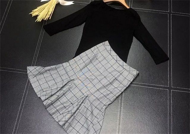 格纹这个元素搭配长筒袜简直就是绝配。一件修身的黑色上衣,一件包臀的格纹半裙,再来一双黑色长筒袜和黑色小皮鞋,经典又不出错的搭配,时髦又拉风,再巧妙地搭配一个黄色的小方包,在黑色的搭配中增添了一抹亮色,让整个人一下子脱颖而出。