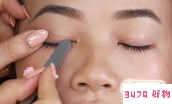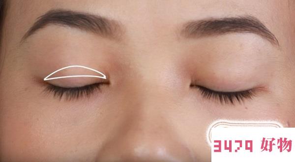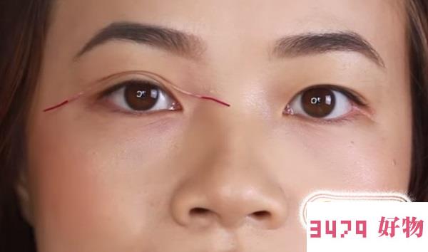02你需要明确双眼皮贴的正确位置,一般正确的摆放位置应该是自然闭眼后眼折的上方,如下图所示: