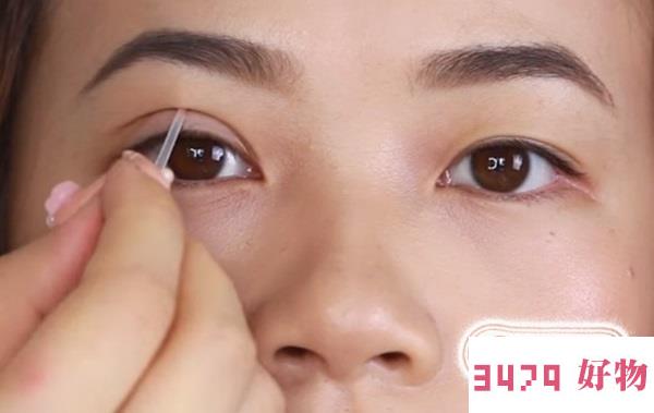 01握住双眼皮线的两端,拉紧后贴在妳双眼皮自然折在线方的位置。