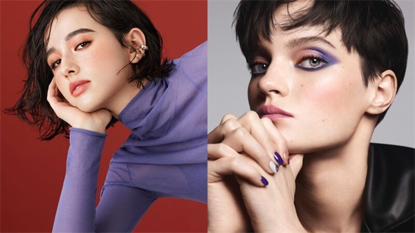 11宵紫YOIYUKARI:鲜丽的紫色调作为单色使用能展现出潮流的时尚感,与灰色叠擦让整体色调更深邃而沉稳,多彩的珠光则增添性感的气息。