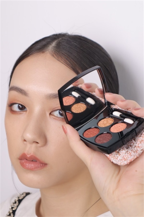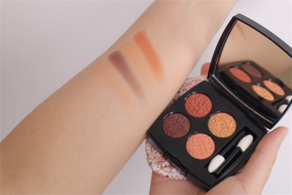 至于在眼影的调色上,香奈儿也从不让我们失望!第一款主打色03红绣,就是以亚洲女生最好驾驭且接受度高的砖红色、枫叶色搭配一点暖红棕的调性为基础,细致的金属珠光参杂在粉质中,就像斜纹软呢的金葱丝线般,为**色泽添入迷人亮点。