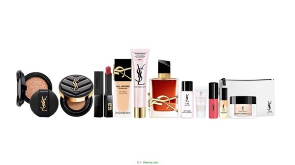 奢华缎面绒雾唇膏(正货)/恒久完美无瑕持妆粉底(正货)/自由不羁香精50ML(正货)/名模肌密光幻防护妆前乳(正货)/恒久完美雾光气垫粉饼(正货+蕊芯)/极效活萃净亮晶透露10ML/极效活萃夜光仙人掌超级精华7ML/极效活萃舒芙蕾乳霜7ML/超模光感极润粉底B20 5ML/时尚印记雪绒唇釉#216 3ML/YSL订制纯白化妆包