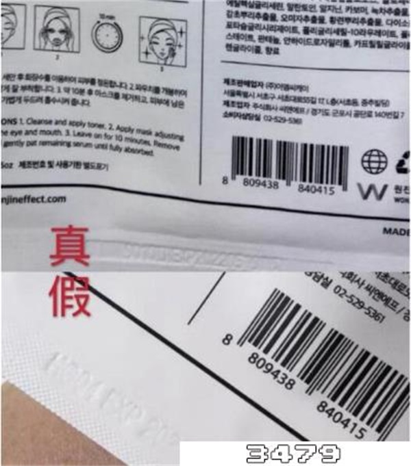 4、正版面膜底下印刷的生产日期很清晰,假货的不怎么清晰。