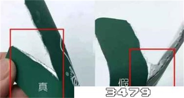 假货:沿着设计的切口,撕开时比较费力,撕口形状大小不一