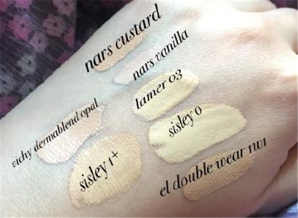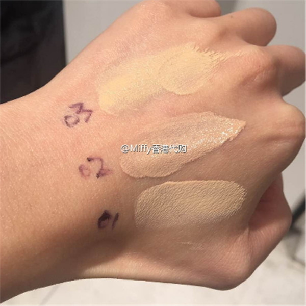 1、03黄底,01和02在它旁边就有明显粉调。和手边随手抓的几个粉底和遮瑕颜色对比。可见03真的不带一点粉调。另外这个粉底我并没有很爱(来自一个湿热地区泛红长痘之油皮)。