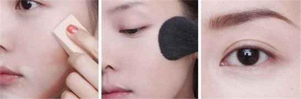 STEP4:然后用化妆海绵把遮瑕膏全涂推匀,可以慢慢来,注意两色过渡的地方要自然。 STEP5:用散粉刷蘸取能提亮肤色的散粉清扫全脸。 STEP6:用深棕色眉笔画出较细的眉毛,注意眉峰处要圆滑。