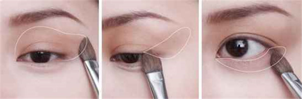 STEP7:用眼影刷蘸取棕色眼影涂在上眼睑处打底。 STEP8:用眼影刷蘸取深棕色眼影涂在上眼睑眼尾处,打造自然阴影。 STEP9:用同样的眼影涂在下眼睑处,宽度大约涂满整个卧蚕。