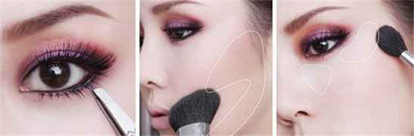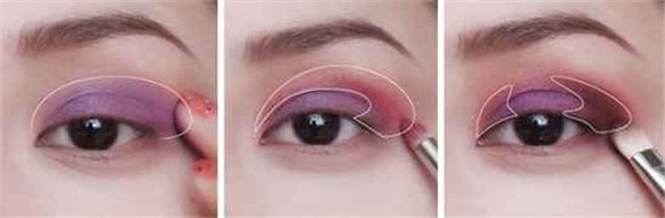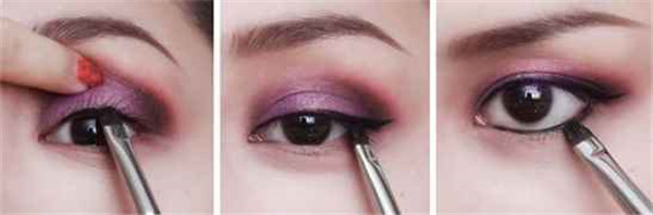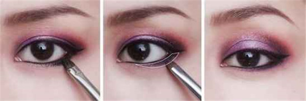 紫色、粉红色、黑色眼影加强点缀
