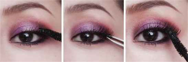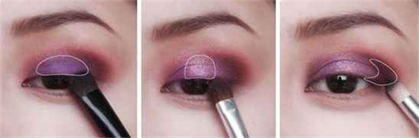紫色、玫红、酒红3色眼影打造主眼妆