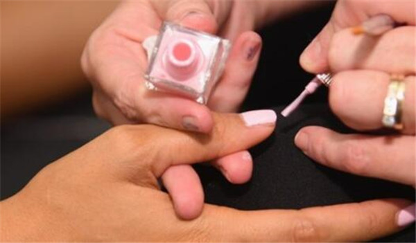 3.沾少许指甲油涂在指甲尖先端,再涂指甲尖的反面 。