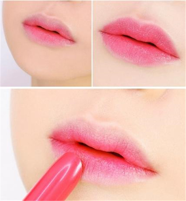 step3.用比口红浅的同色系涂抹,可使嘴唇更具质感,给人丰润的娇鲜欲滴的水润。