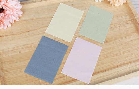 吸油面纸的质地比普通纸巾要细腻得多,不必担心对皮肤造成伤害。轻轻按压才是吸油面纸的正确使用方法,先由最容易出油的T字部位开始,然后逐渐移到脸颊,去除多余油脂。