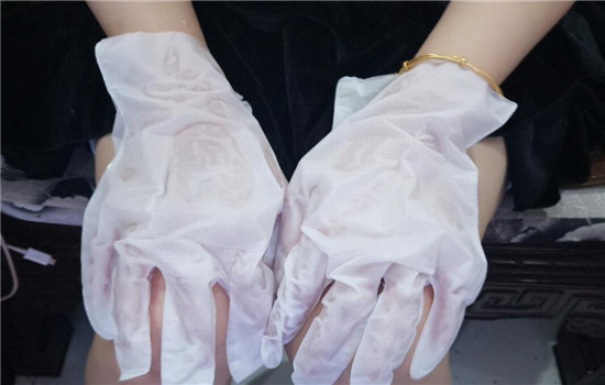 4、等大约15分钟之后,就可以吧手套取下,佐以适当的手部**帮助吸收。
