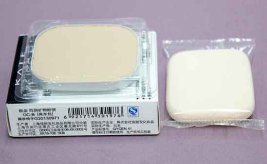 第一步:粉底液、遮瑕后,粉扑沾取适量粉饼,上脸前稍微抖一下,抖掉上面的余粉。