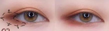 Step2:在眼尾下方的三角区域(图片黑色虚线区域内)用深棕色眼睛涂抹,加深眼睛轮廓。