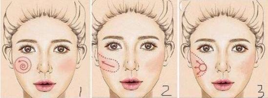 腮红一定要打,提气色,玫瑰色为主,淡淡的一扫而过。乍一看看不出打了腮红,仿佛是肌肤自然的白里透红。