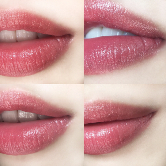 Cary是一个很正宗的梅子豆沙色,右下角厚涂会比较接近膏体颜色,小小的可爱的豆沙色。