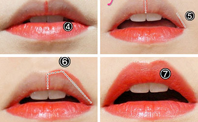步骤8:按照步骤7画出唇形,再用唇刷沾口红,填满唇色。饱满而自然的唇妆就算是完成了哦!