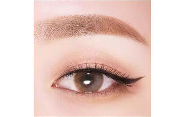第二步:在眼尾虚线内部画上淡棕色眼影,眼尾颜色稍微加深,往前慢慢变浅。