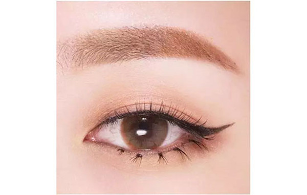 第四步:用眼线笔照着左边图片画眼尾眼线的方向。